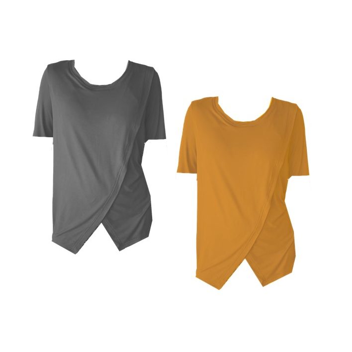 Comfy Maternity & Breastfeeding Tops | Short sleeve | 2 Pack | Grey & Mustard