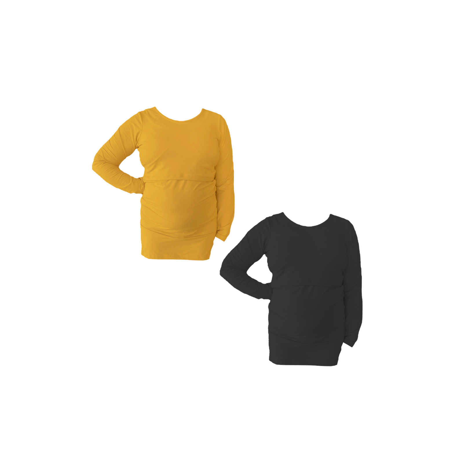Maternity & Breastfeeding Tshirt | Long sleeve | 2 Pack | Black & Mustard