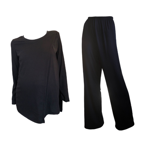 Maternity & Nursing | Hospital Pajamas | Comfy Long Sleeve Top – Wide Leg Pants |Elegance |Black -TALL