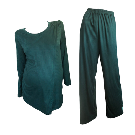 Maternity & Nursing | Hospital Pajamas | Comfy Long Sleeve Top – Wide Leg Pants |Elegance | Botanic Green | TALL