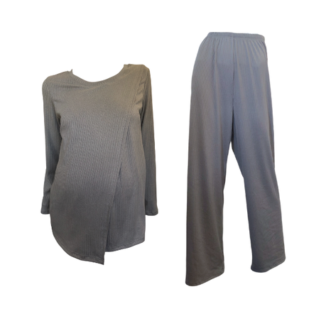 Maternity & Nursing | Hospital Pajamas | Comfy Long Sleeve Top – Wide Leg Pants |Elegance |Grey