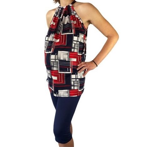 Maternity Pillowcase Top & Tights Combo | Red Square & Navy Tights