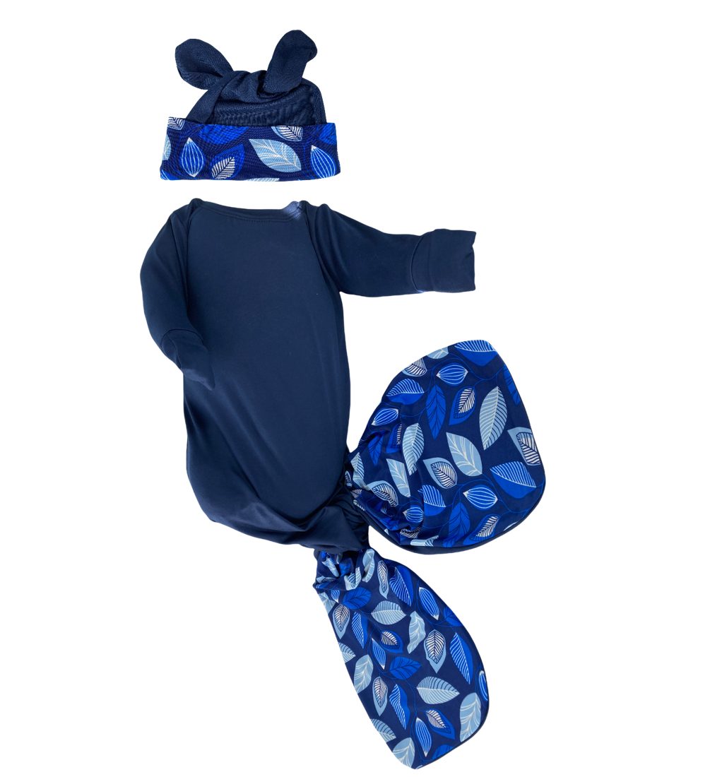 A must-have to include in your Mommy bag for the hospital. Can be used as a delivery gown for hospital maternity, maternity pyjamas for hospital, a newborn knotted babygrow and a hat set and is a perfect addition to your maternity hospital bag essentials.