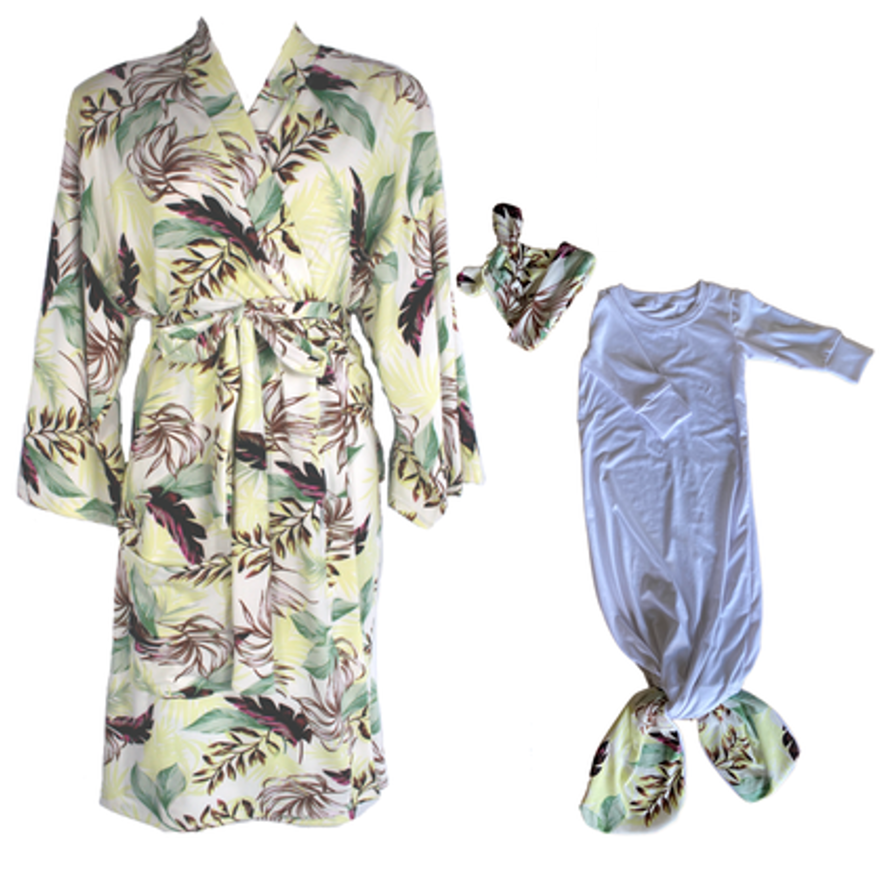 Mom & Me Hospital Set | Gown, Beanie & Knotted Babygrow | Green Leaves