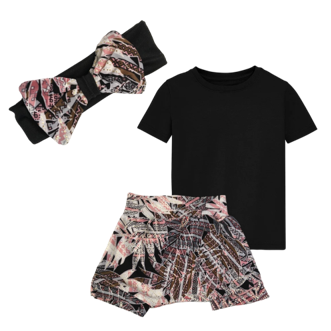 Mom & Me Matching | FDY Harem, T-Shirt and Headband Set | Black and Pink