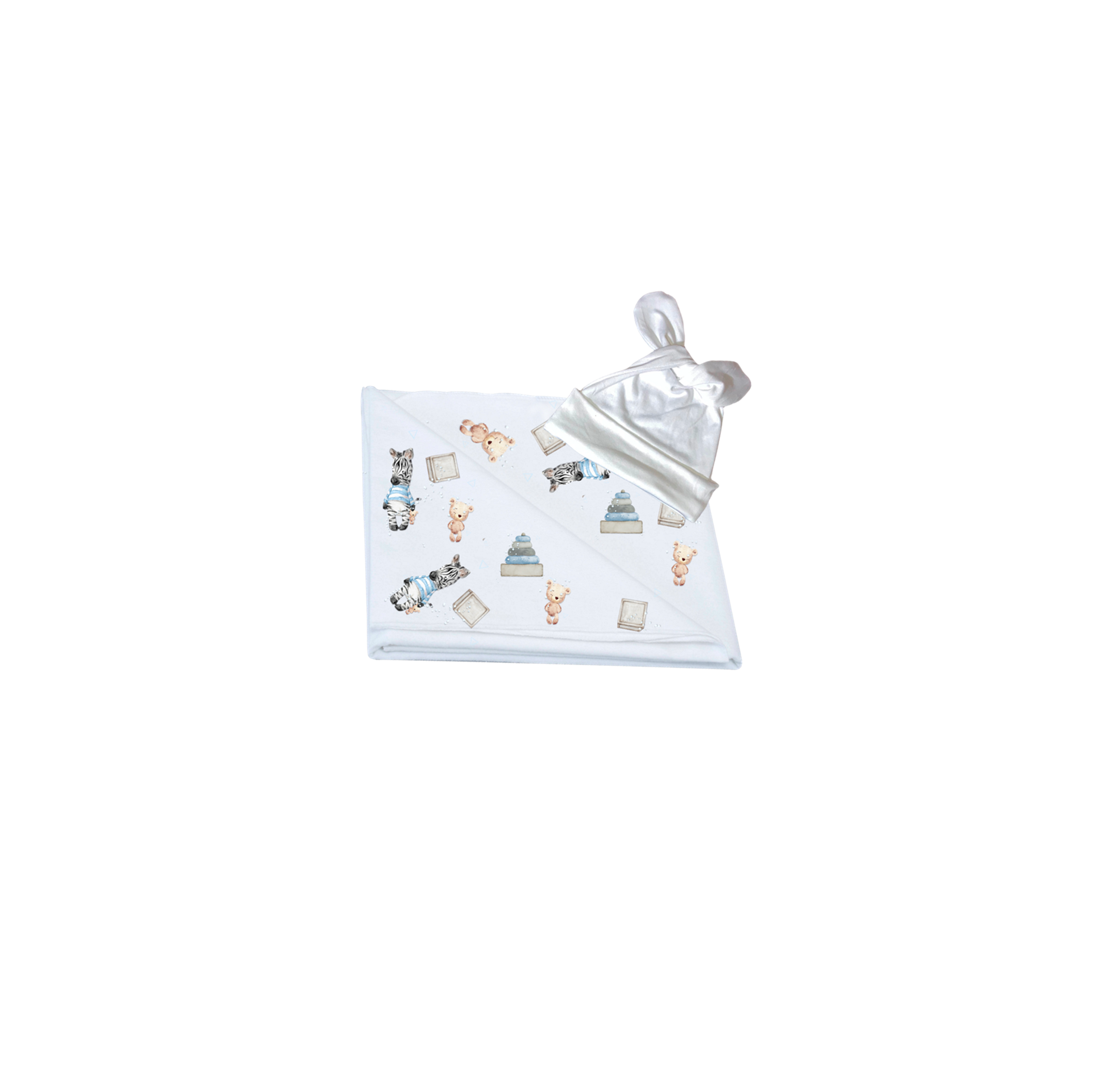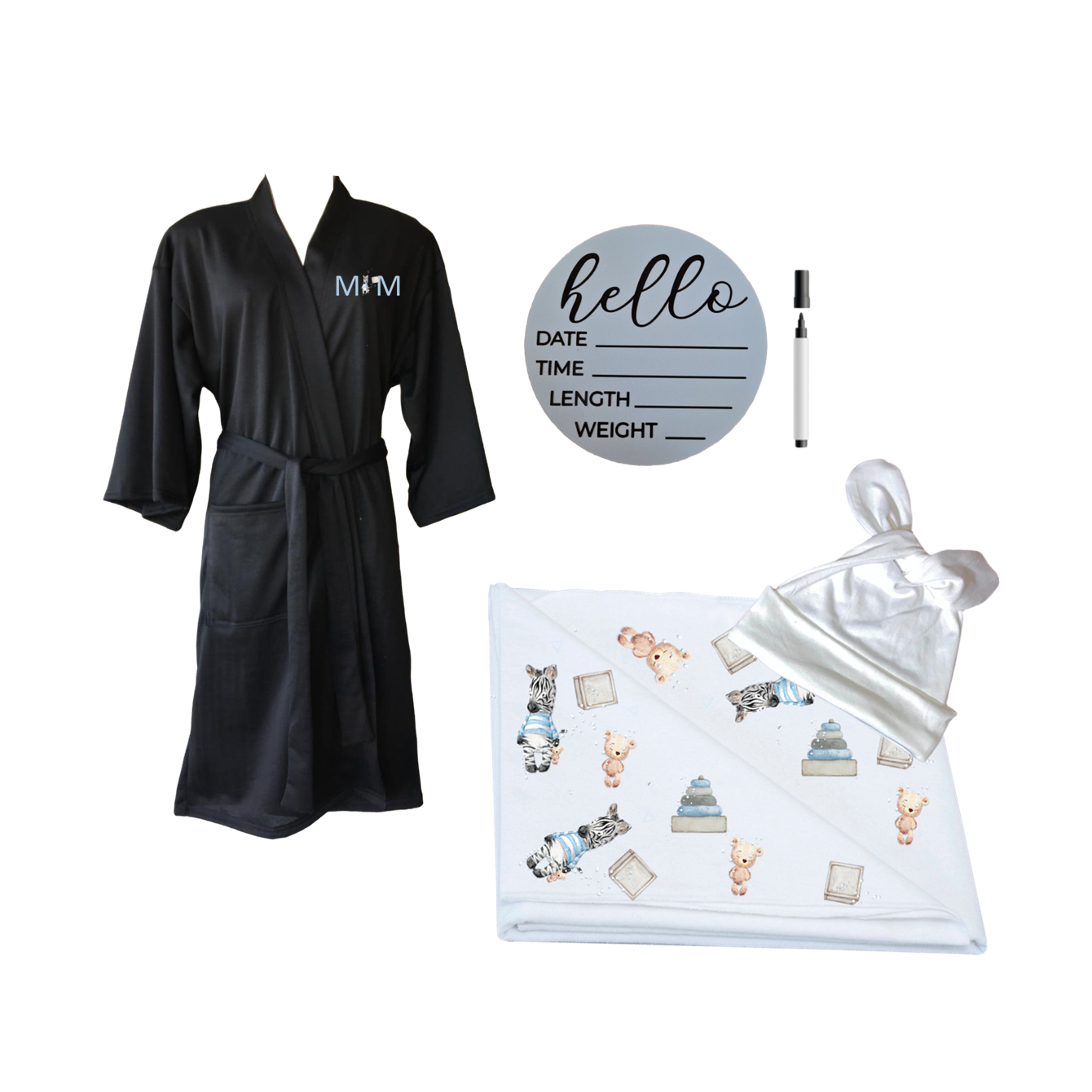 Mom & Me Set | Printed Gown, Swaddle & Milestone Board | Blue Zebra
