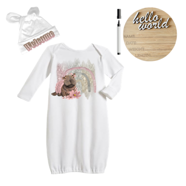 New Born Sleeping Bag | Hat & Birth Announcement | Hello World | Pink Hippo