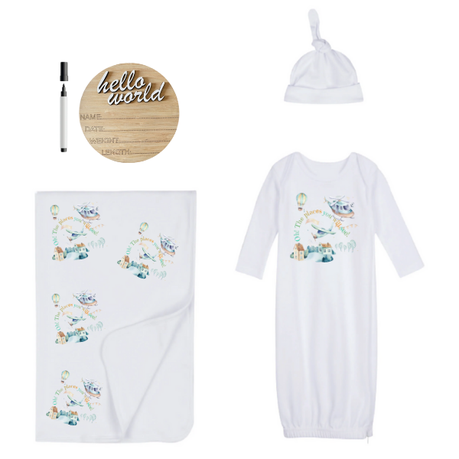 New Born | Sleeping Bag, Swaddle, Hat & Birth Announcement | Hello World | Air Transport