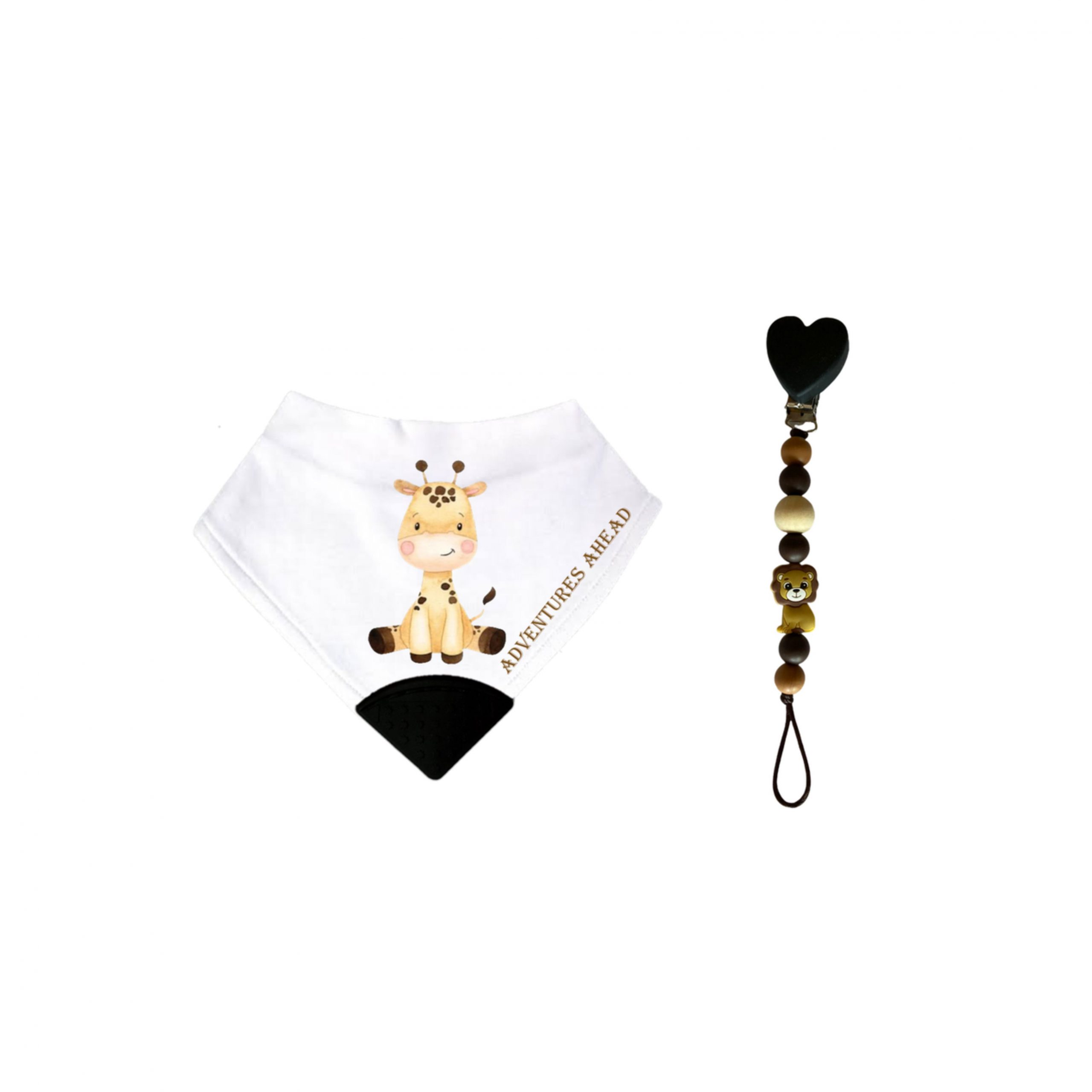 Silicone Dummy Clip & Bib Combo | Safari (Lion & Giraffe)